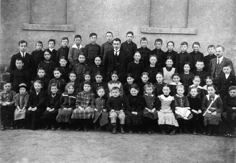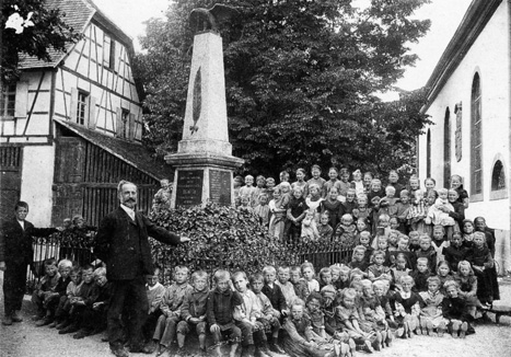 die Leutesheimer Schüler beim Kriegerdenkmal (1907).