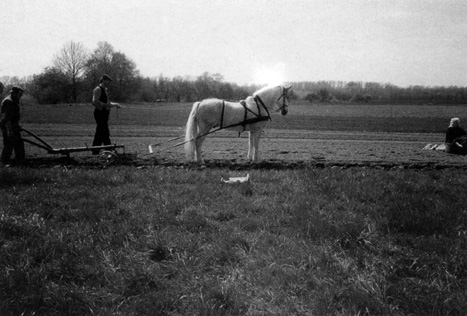 Pflügen. Mit dem Pferd ging das ja leicht, aber mit zwei Kühen