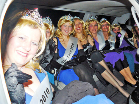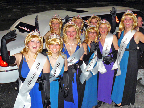 vor der Faschingshalle neun Schönheiten aus einer weißen