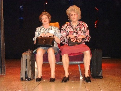 zwei alte Litzmer Damen verkleidet eine Zugreise zur