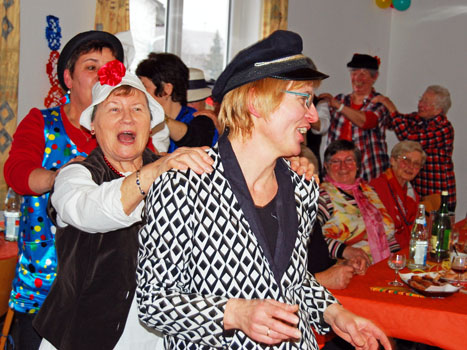 ihre Kolleginnen vom DRK Leutesheim bei der Seniorenfasnacht ein