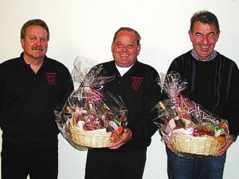 einem Geschenkkorb aus dem >>aktiven<< Dienst verabschiedet und