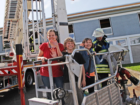 Kinder aus dem Gebäude gerettet. Etwas unspektakulär ging es auf