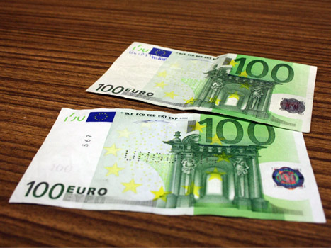 Oben falsch, unten echt. Immer besser, immer verblüffender: Die Techniken der Banknotenfälscher werden immer ausgefeilter. Foto: Marco Karch