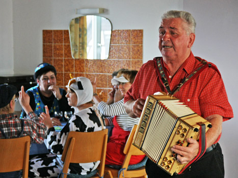 Ganz in seinem Element unterhielt der »Vogte-Fritz« die Leutesheimer Senioren mit seiner Ziehorgel. Foto: Marco Karch