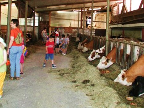 Kinder zu Gast auf diesem Bauernhof. Sie durften dort Kühe,
