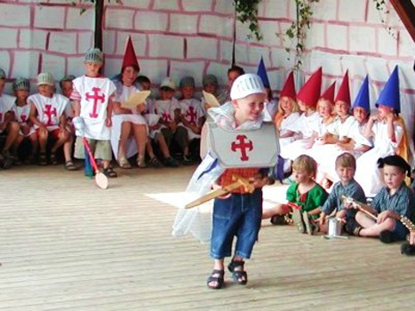 die nachgebildete Burg zu Hofe des Kindergartens ein. Nach der