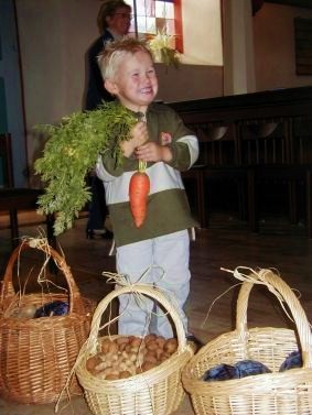 Gotteshaus. Früchte und Gemüse, von den Kindern und den