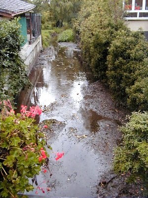 Rückschnitt der Bäume den Dorfbach teilweise ausbaggern lassen.