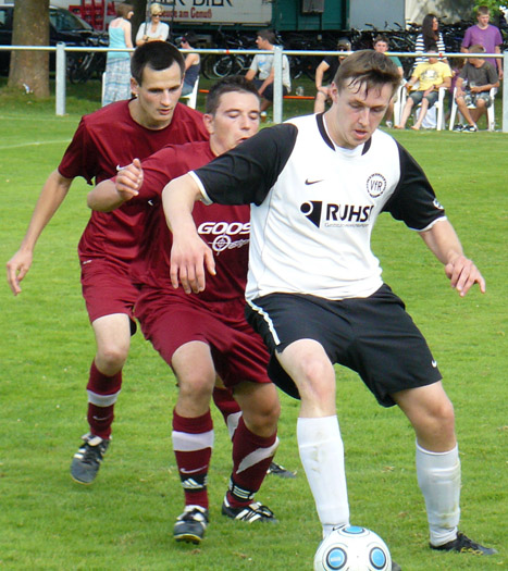 per Strafstoß, Sascha Müller und Spielertrainer Jürgen Wippich