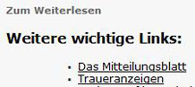 Weitere wichtige Verweise, wie Traueranzeigen, Abfuhrtermine